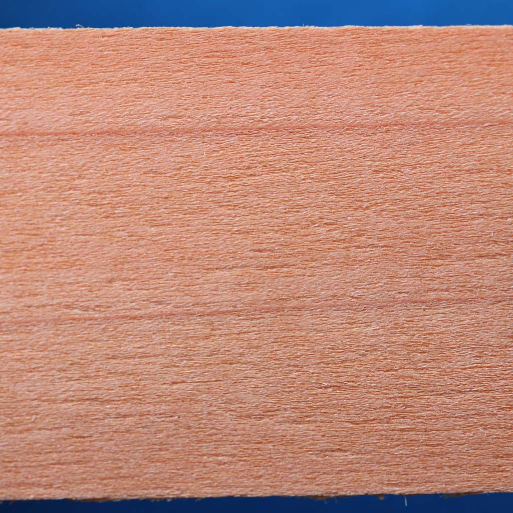 Orange veneer, .020" (.5mm) x 34.5" (876mm), available at .060", .080", .100", .187" or .250" widths. Sold in bundles of 10 strips